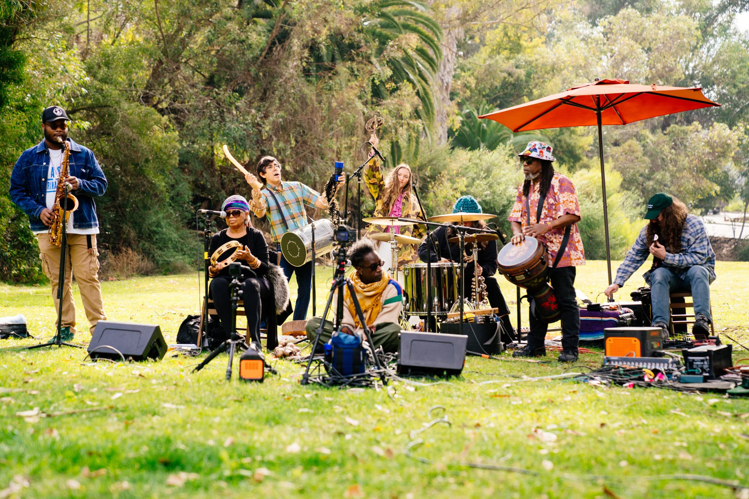 Elysian Invocation begins with a rising gale of percussion and interplaying melodic lines before Williams’ righteous calling becomes the focus, both dreamlike in its imagery and incendiary in its authenticity. As vocalist (the Grammy-nominated, Pan Afrikan Peoples Arkestra member) Maia the Artiste repeats our culture is burning / sound the alarm over a tempest of intense, expressive energy, we are drawn into the eye of a cleansing, regenerative storm. The piece was recorded at Leaving Records’ regular Listen to Music Outside in the Daylight Under a Tree live series in LA, here for a California wildfires fundraiser event on Saturday, February 8, 2025.