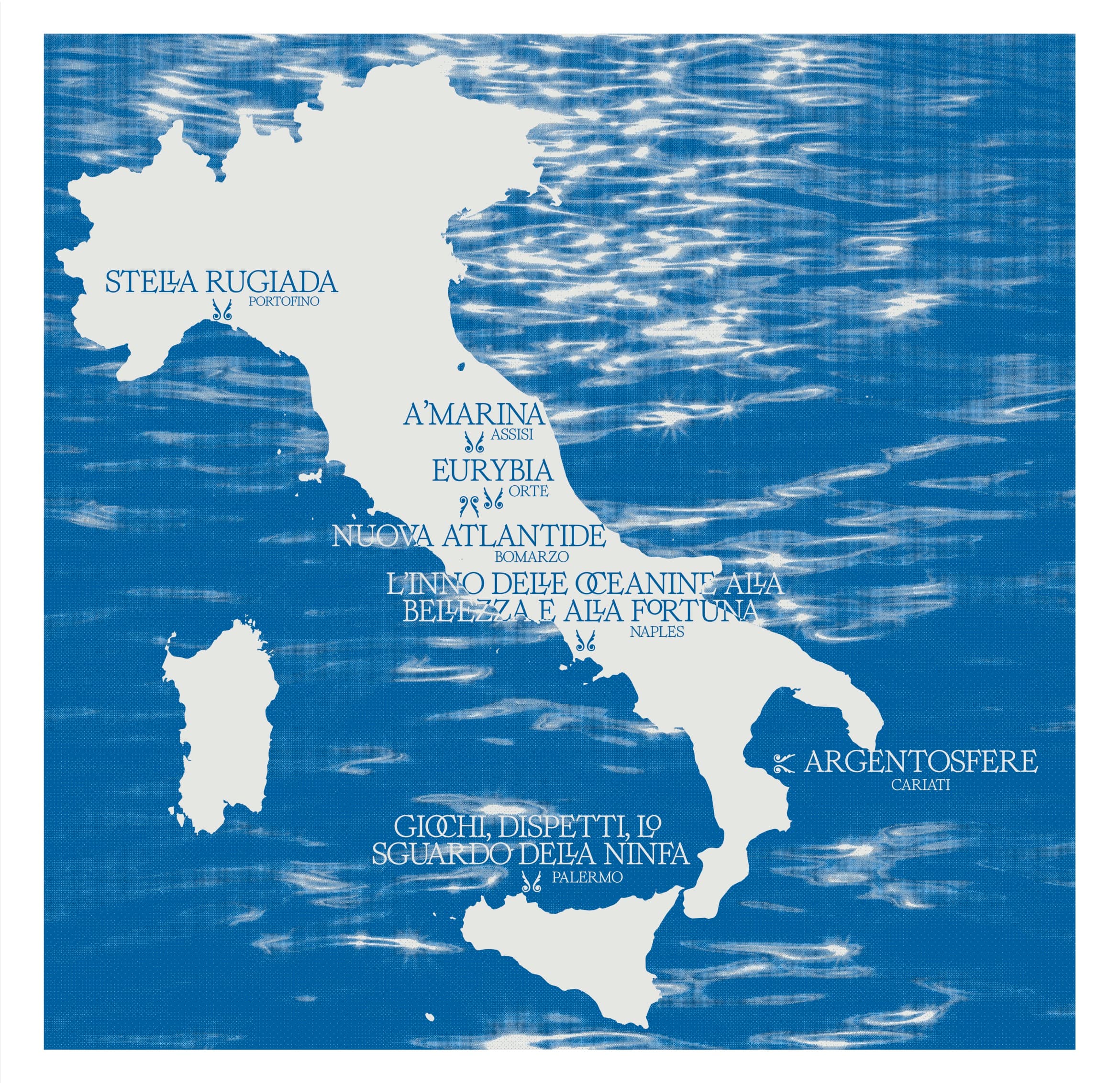 The work is the product of a series of intimate imaginary projections and aural engagements with a number of geographical sites scattered across the Italian landscape. Places which have resonated with Francesca during various personal travels and pilgrimages, due to their extramundane and often even mystic significance. The most outstanding/iconic being the cloisters and gardens of San Gregorio Armeno’s monastery in Naples, and the Nympheum of Villa Giulia in Rome.